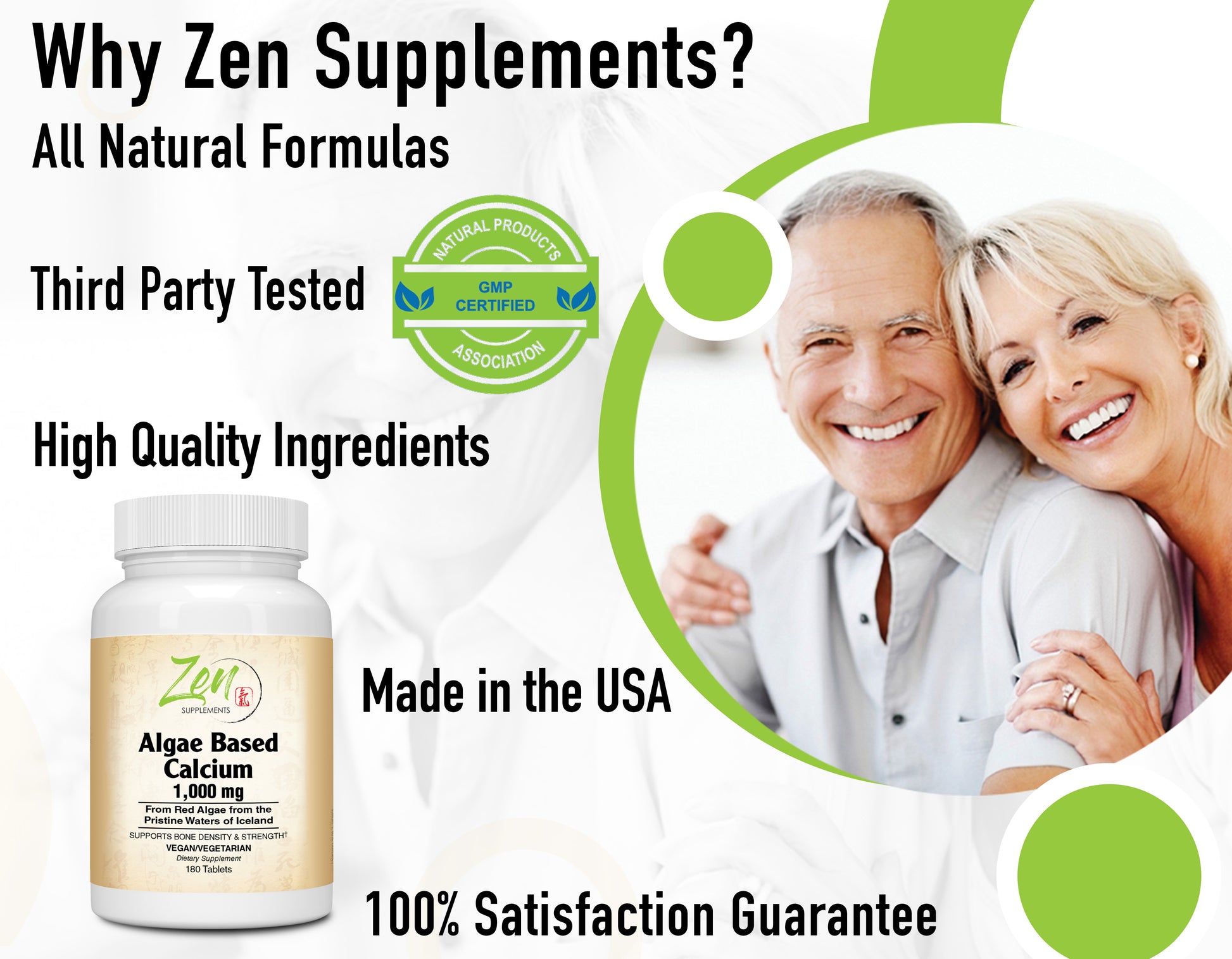 Zen Supplements Algae Based Calcium uses Aquamin mineralized red algae and is collected in the pristine Arctic waters of Iceland.