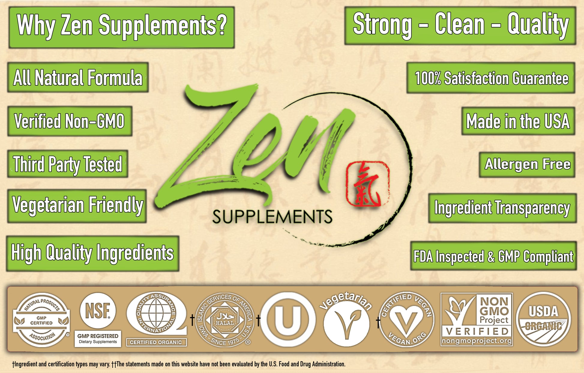 When you buy with Zen Supplements you can rest easy knowing that all of our products are 100% made in America. This is not only helping economy and has ethical labor laws, but it is also much more regulated and clean.